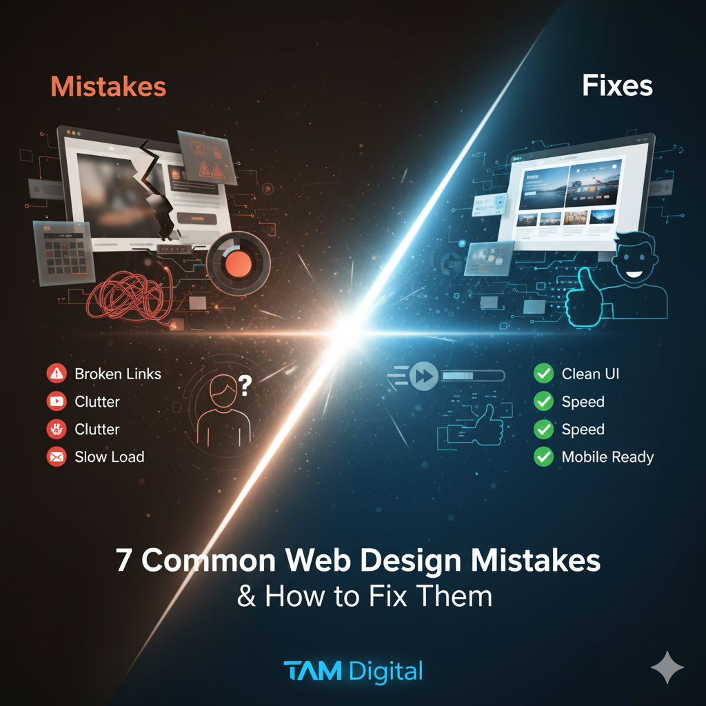 At TAM Digital, we understand the unique challenges faced by businesses in our local market. This guide outlines seven common web design pitfalls we frequently see and provides clear, actionable steps to fix them. By addressing these issues, you can enhance your online presence, attract more qualified leads, and avoid a costly, time-consuming redesign down the road.